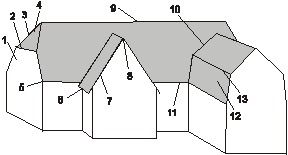 ![]() Krüppelwalmdach mit Friesenerker | ![]() Pyramidendach/Zeltdach | ![]() Krüppelwalmdach |