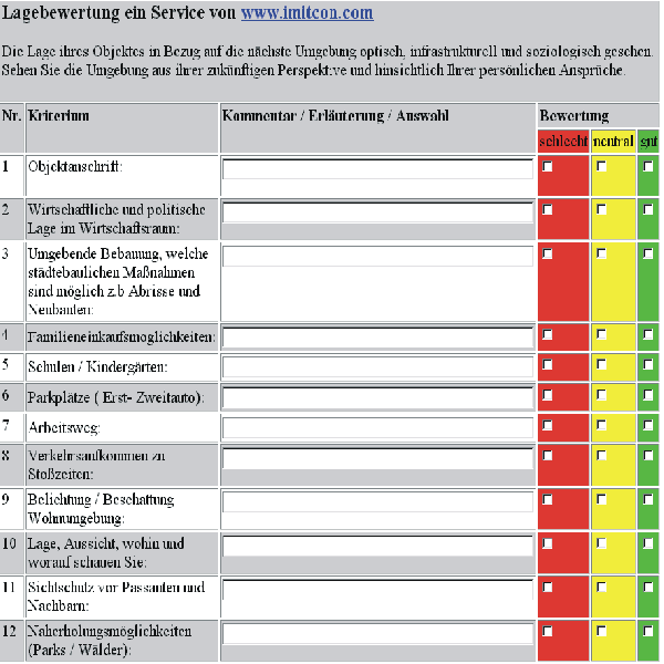 ![]() Checklisten mit über 500 Kriterien zur individuellen Erweiterung der Qualifizierungslösung Ihrer Immobilie. Erweiterungsthemen sind: